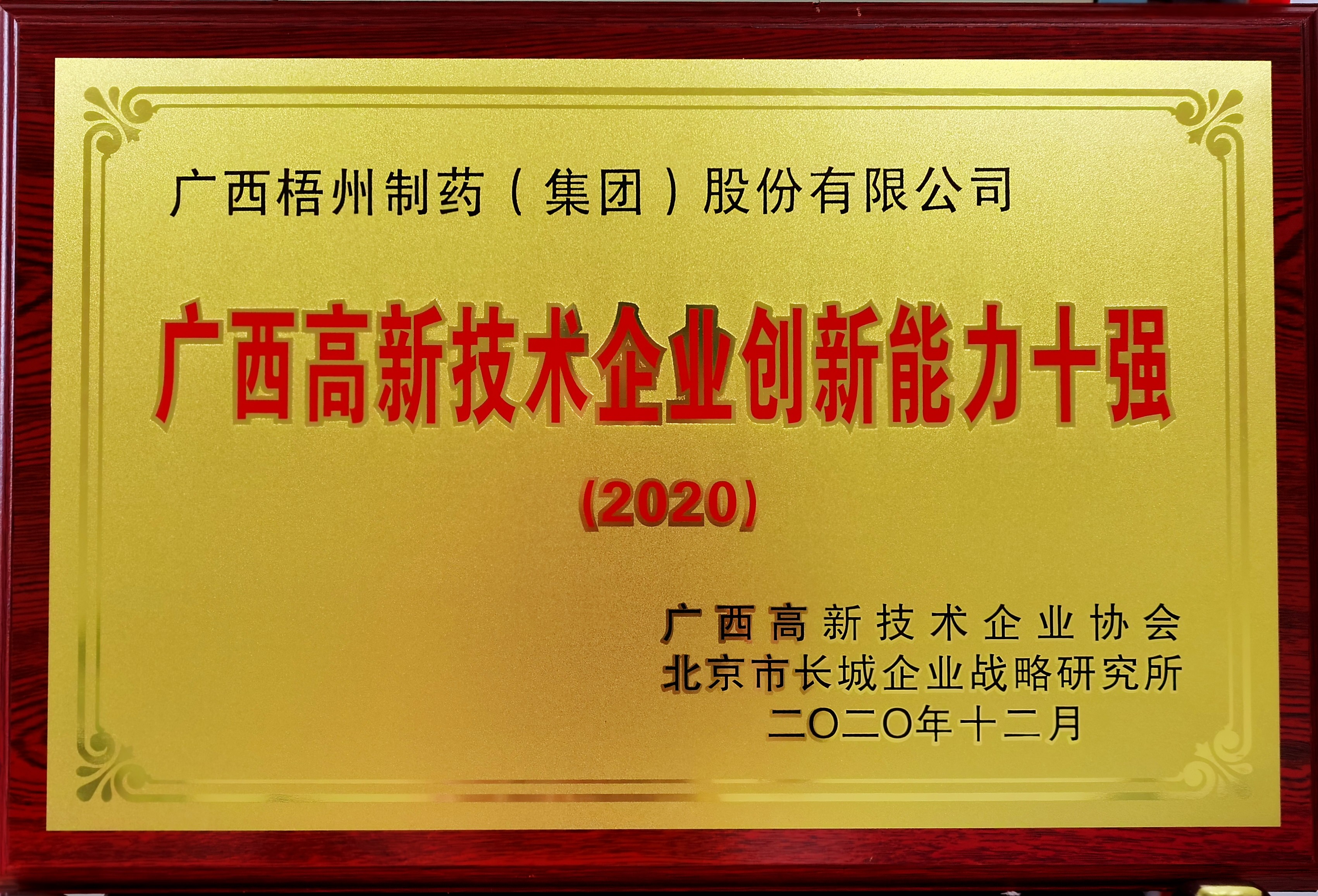 榮獲2020年廣西高新技術(shù)企業(yè)創(chuàng)新能力十強(qiáng)稱(chēng)號(hào)