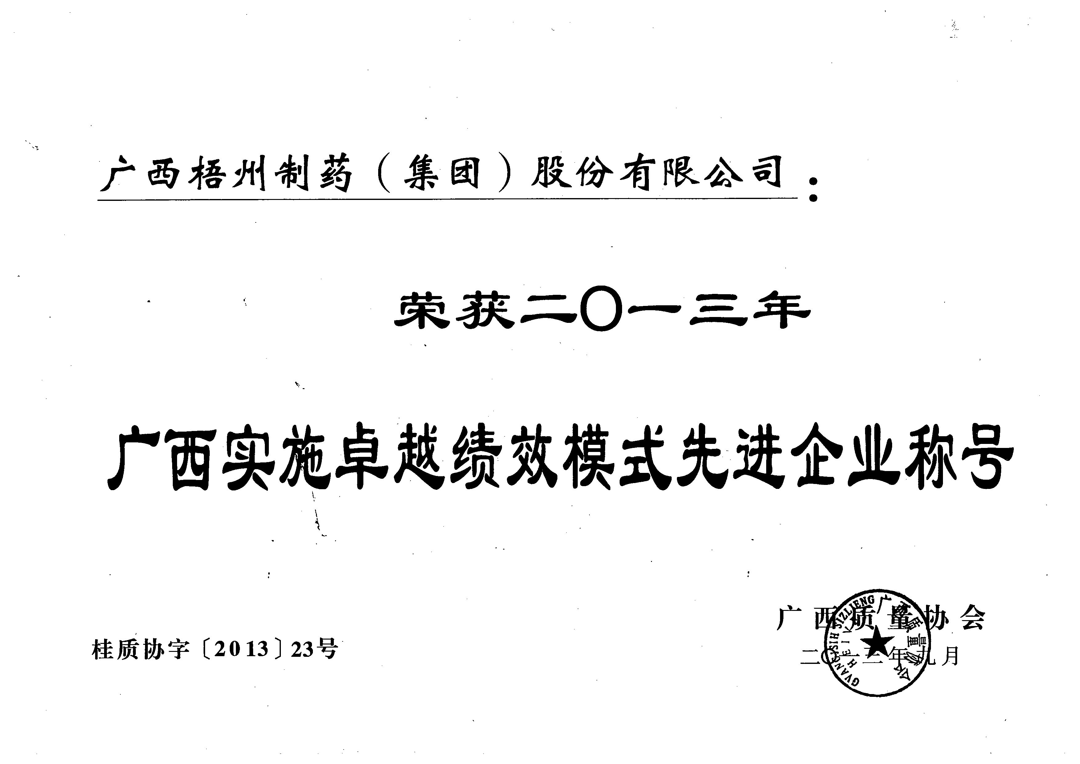 榮獲2013年廣西實施卓越績效模式先進企業(yè)稱號