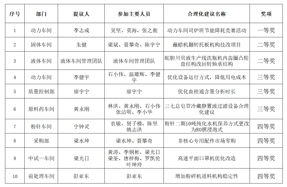 固體車間員工提出的《蘸蠟機(jī)翻轉(zhuǎn)托板機(jī)構(gòu)技改項目》通過對蘸蠟機(jī)翻轉(zhuǎn)托盤角度、翻轉(zhuǎn)氣缸進(jìn)氣速度調(diào)整等改造工作,每天約減少200-300只殘留蠟丸,既有效降低人工輔助落丸的安全隱患,同時減少了成品廢品率和停機(jī)清理時間,每年增加經(jīng)濟(jì)效益約5萬元。