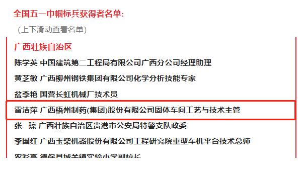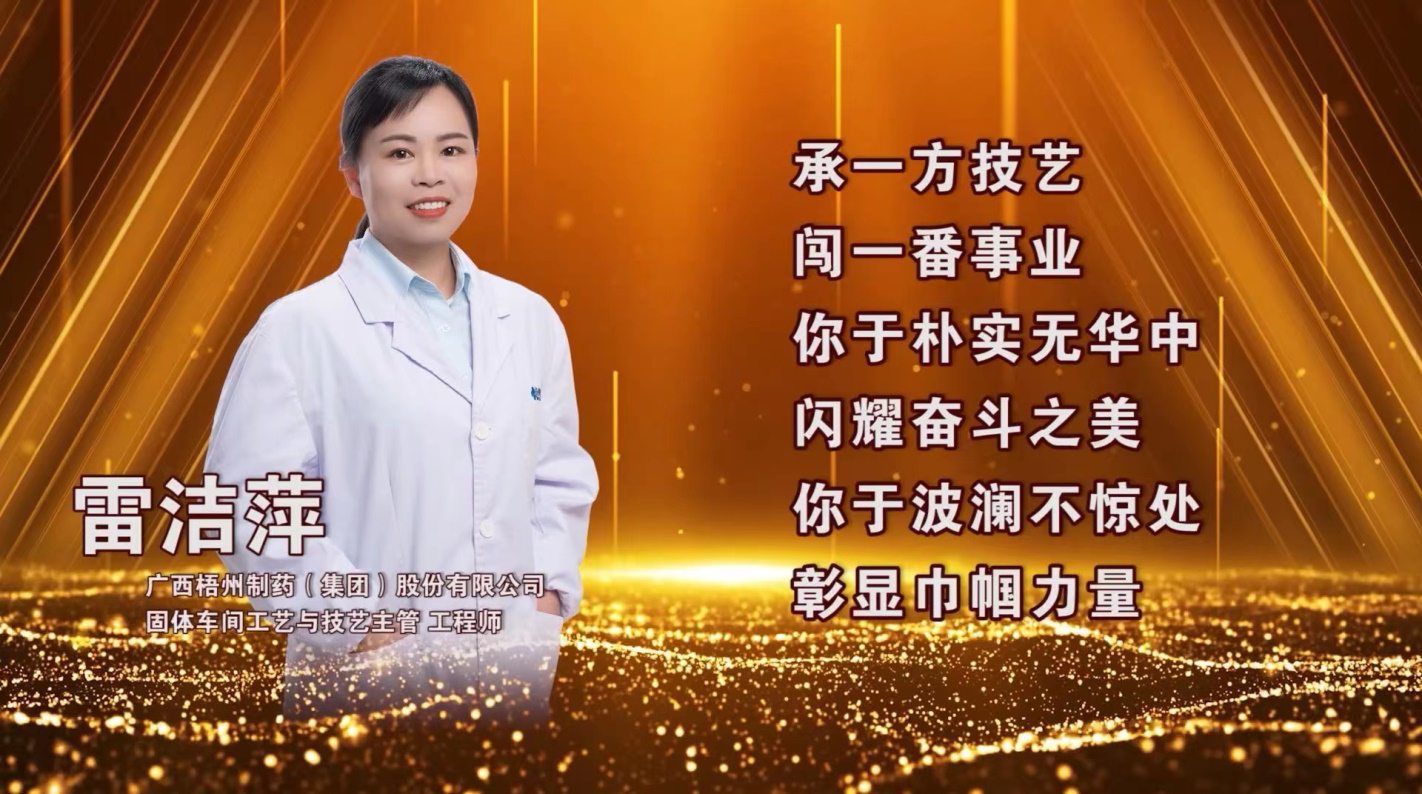 近日,中華全國總工會在北京隆重召開2023年全國五一巾幗獎表彰大會,大會表彰了450個全國五一巾幗標(biāo)兵崗、450名全國五一巾幗標(biāo)兵。梧州制藥固體車間工藝與技術(shù)主管、中華跌打丸制作技藝“非遺”傳承人雷潔萍榮獲“全國五一巾幗標(biāo)兵”稱號。其所在的固體車間于2021年度曾榮獲 “全國巾幗文明崗”榮譽(yù)稱號,她們巾幗不讓須眉,立足崗位履職盡責(zé),把智慧和汗水奉獻(xiàn)在崗位,為企業(yè)快速發(fā)展作出了積極貢獻(xiàn),充分發(fā)揮了“半邊天”不可替代的作用。