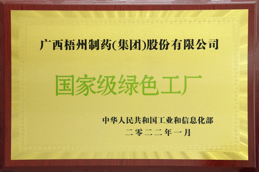 廣西梧州制藥(集團(tuán))股份有限公司榮獲2022年國家級(jí)綠色工廠