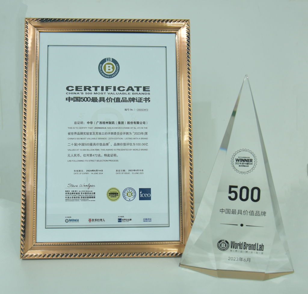 廣西梧州制藥(集團(tuán))股份有限公司“中華品牌”獲評(píng)中國500最具價(jià)值品牌,品牌價(jià)值評(píng)估為100.06億人民幣。