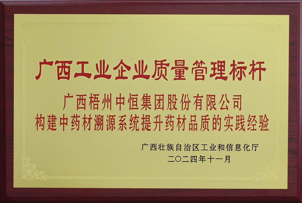 廣西梧州制藥(集團(tuán))股份有限公司(構(gòu)建中藥材溯源系統(tǒng)提升藥材品質(zhì)的實(shí)踐經(jīng)驗(yàn))榮獲廣西工業(yè)企業(yè)質(zhì)量管理標(biāo)桿
