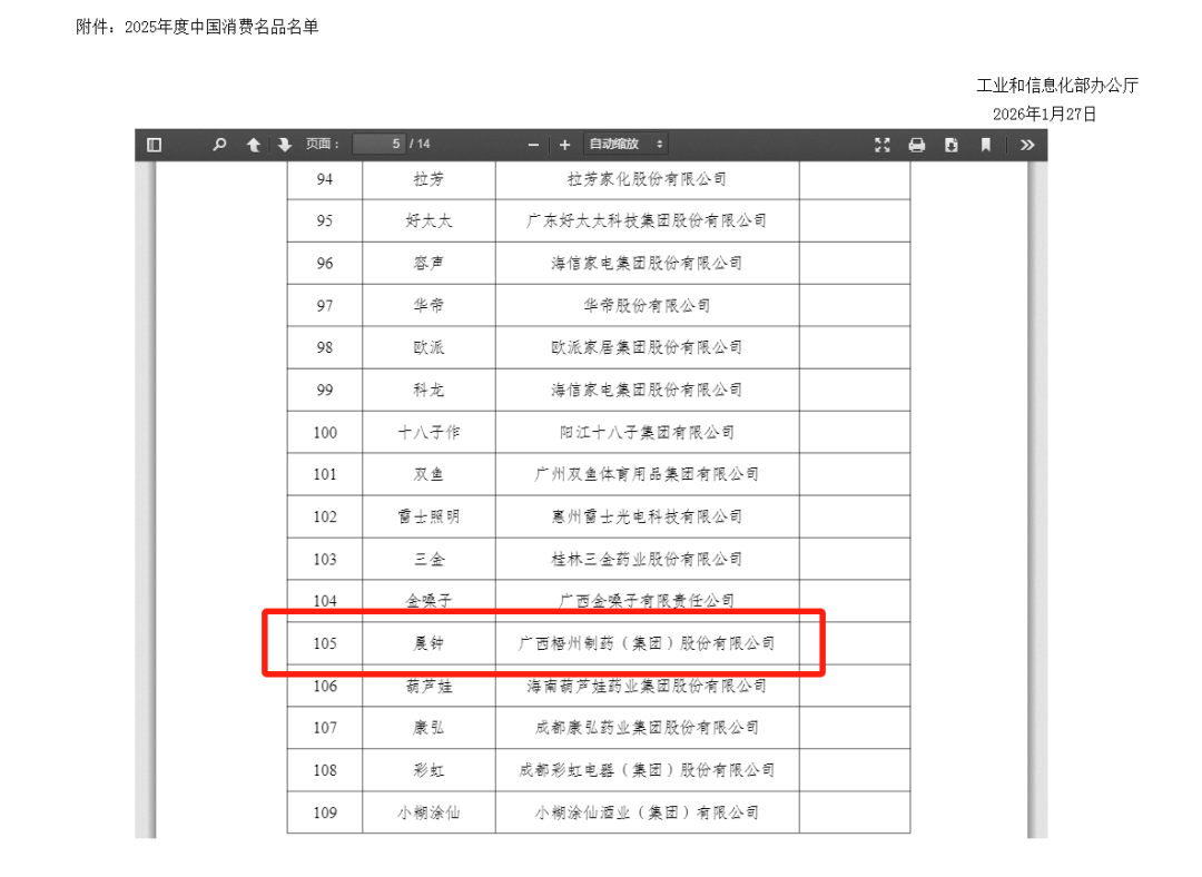 近日,工業(yè)和信息化部辦公廳公布了2025年度中國消費名品名單,中恒集團旗下廣西梧州制藥(集團)股份有限公司“晨鐘”品牌憑借卓越的產(chǎn)品品質(zhì)、深厚的文化底蘊成功入選名單。據(jù)悉,2025年度中國消費名品評選是工業(yè)和信息化部主導(dǎo)的首次國家級消費品牌評選活動,核心目標(biāo)是打造代表中國品質(zhì)的消費名品方陣,推動消費升級與全球知名品牌培育?!俺跨姟逼放频某晒θ脒x,標(biāo)志著其已躋身國家級優(yōu)質(zhì)消費品牌行列,成為梧州制藥品牌建設(shè)歷程中的重要里程碑。