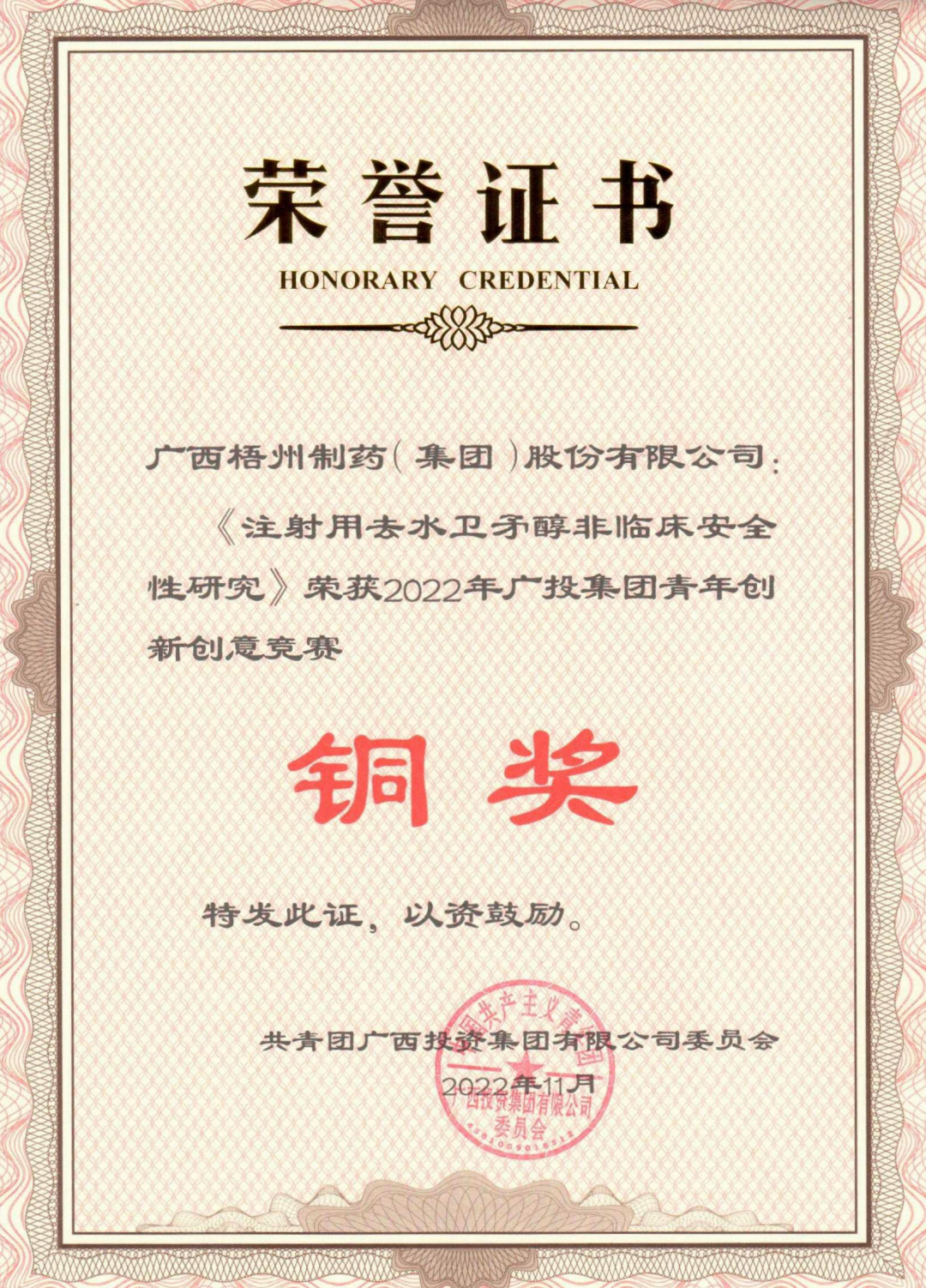 近日,由梧州制藥質(zhì)量保證部組成的梧州制藥代表隊——“質(zhì)量衛(wèi)士”隊,憑借項目《注射用去水衛(wèi)矛醇非臨床安全性研究》獲得2022年廣投集團青年創(chuàng)新創(chuàng)意競賽銅獎的表彰。本次競賽共有16個項目最終入圍決賽,通過視頻會議的