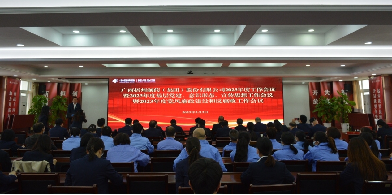 2月3日,梧州制藥召開2023年度工作會議暨2023年度基層黨建、意識形態(tài)、宣傳思想工作會議暨2023年度黨風廉政建設(shè)和反腐敗工作會議。會議以習近平新時代中國特色社會主義思想為指導,深入學習貫徹黨的二十大精神,全面