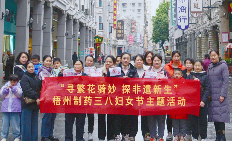 3月8日,為慶祝第115個“三八”國際勞動婦女節(jié),梧州制藥工會精心策劃的“尋繁花騎妙 探非遺新生”主題活動在梧州騎樓城舉辦。此次活動以“穿梭歷史長河,探尋非遺魅力,邂逅健康與幸運”為主線,以騎樓城獨特的建筑風貌與
